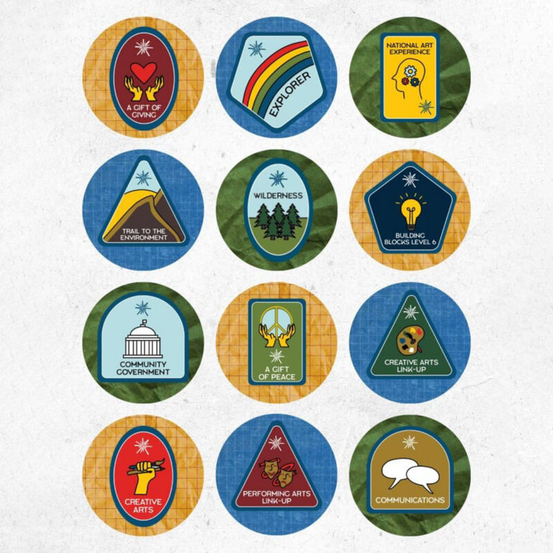 Additionally, symbols from the symbol book were core to our recognition items – emblems – and needed to be updated. In 2021, Camp Fire National Headquarters recruited young people from Camp Fire affiliates across the country to redesign Camp Fire’s rewards and recognition system. Through the Make Your Mark initiative, young people explored the culturally appropriative roots of Camp Fire traditions and reimagined new emblems that made sense for them in today’s world.