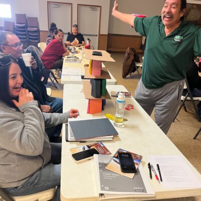 First responder Harold Tiger leads a local Community Emergency Response Team (CERT) training in Dupree, South Dakota to educate volunteers on how they can help their communities. Photo courtesy of the Cheyenne River Long Term Recovery Group.
