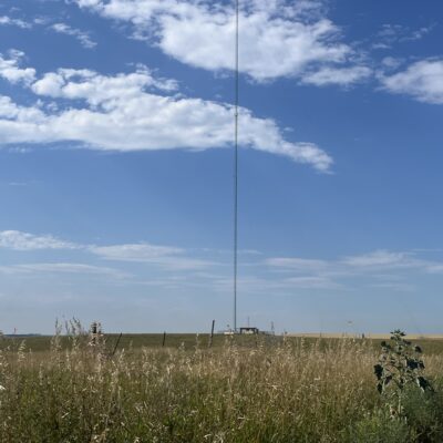 A radio tower situated in the rural landscape of the Cheyenne River reservation. The local radio station, KIPI, serves as a lifeline during emergencies for remote, hard to reach residents. Photo courtesy of the Cheyenne River Long Term Recovery Group.
