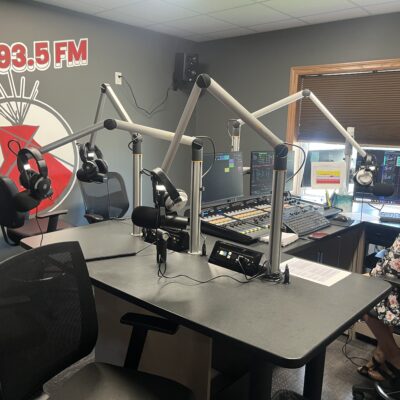 Broadcast booth in the KIPI radio station in Eagle Butte, South Dakota. Photo courtesy of the Cheyenne River Long Term Recovery Group.