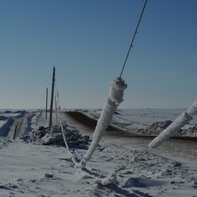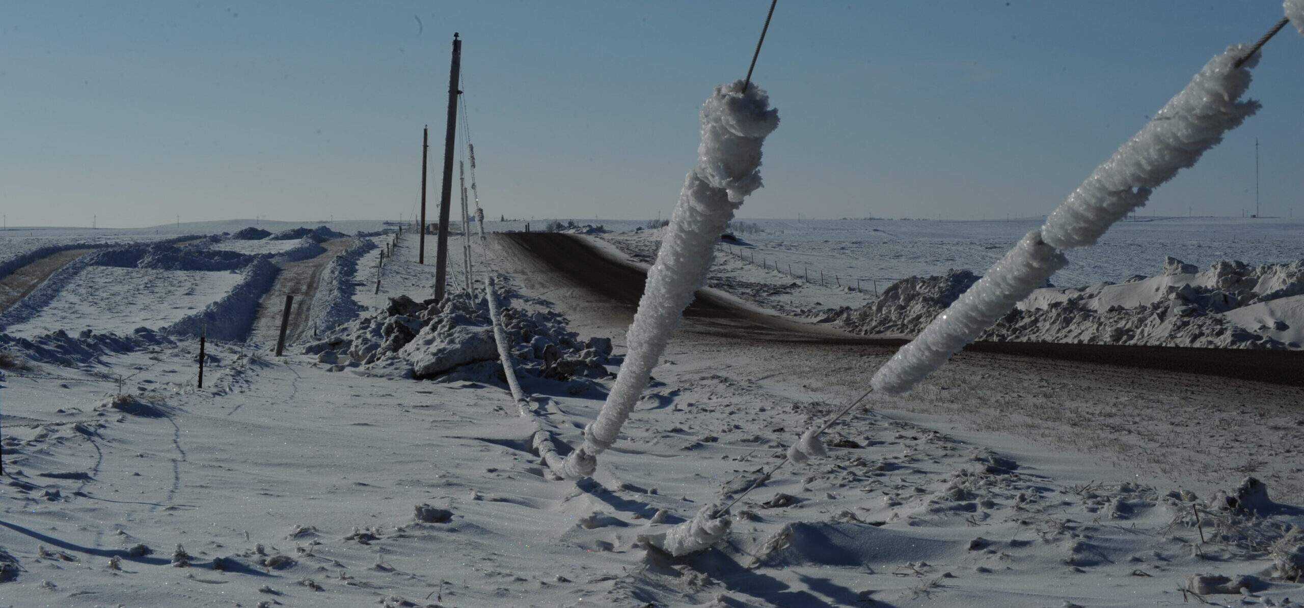 Power lines taken down by ice and snow on the rural Cheyenne River reservation. Photo courtesy of Moreau-Grand Electric Cooperative/the Cheyenne River Long Term Recovery Group.